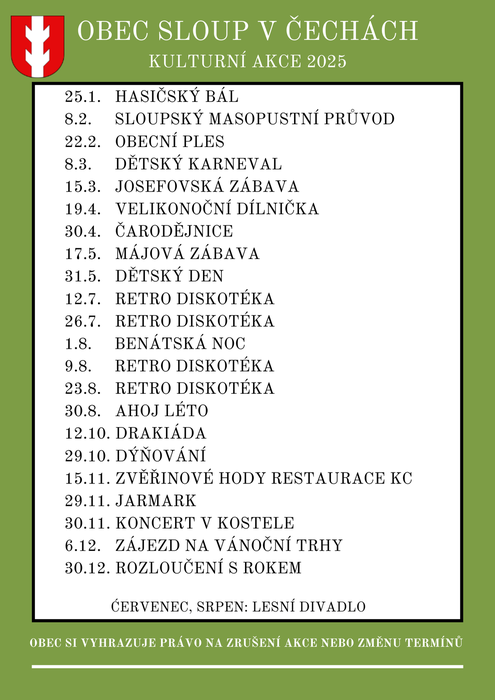 Úvod > Kultura > Přehled kulturních akcí pro aktuální rok > Přehled kulturních akcí obce 2025