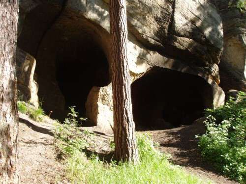 Jeskyně byla zřejmě vytvořena kolem roku 1756 těžbou brusného písku pro první sloupskou zrcadlárnu. Podle místní tradice později sloužila jako příležitostné obydlí potulných cikánů. Po značené cestě podél Dobranovského potoka dojdeme asi po 500m k ohromné pískovcové Velké Cikánské jeskyni osídlené pravděpodobně již v pravěku. Vlevo vzhůru úvozovou cestou dojdeme k rozcestí U Sedmi trpaslíků. Přejdeme vpravo a starobylou úvozovou cestou (stará kupecká cesta Praha - Žitava) se dostaneme dolů k Sloupskému hradu.